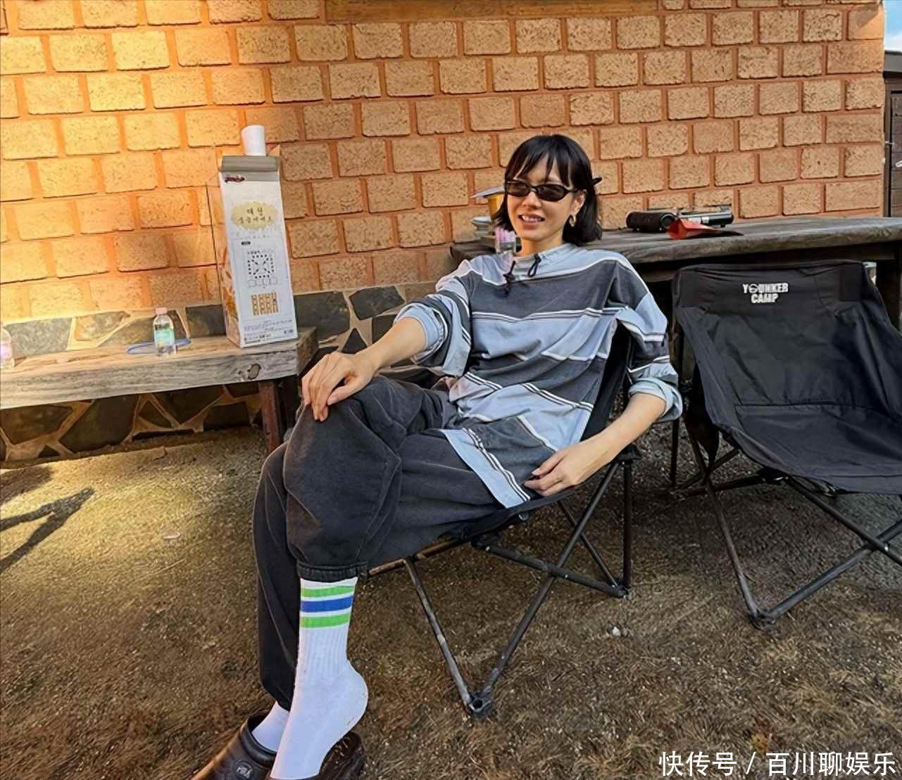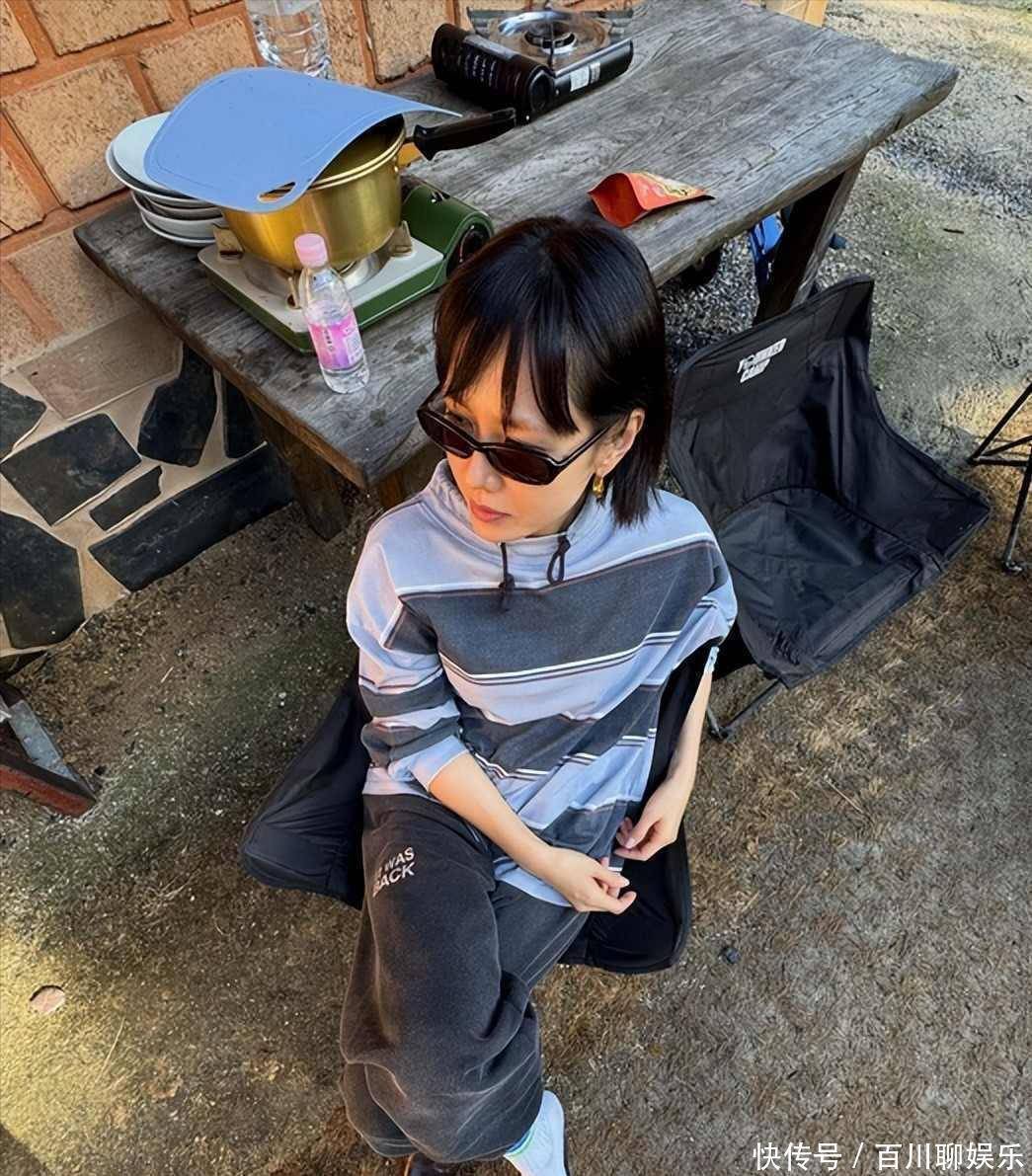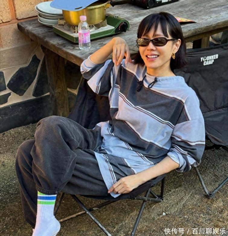 孙艺珍最近在社交平台发了一组照片,剪了齐肩短发,穿蓝灰条纹上衣,搭深灰裤子,脚上是白袜配黑鞋,手里拿着汤勺,正坐在野餐桌上,身后是农场的木桌,小炉子冒着热气,切菜板上还放着没收拾的菜,玄彬没出镜,只在镜头外头拍,儿子小甜豆骑着平衡车从旁边溜过去,也没正对着镜头,配文就一句,没办法,没见过吗,聚起来吧,没广告,没标签,也没修图。